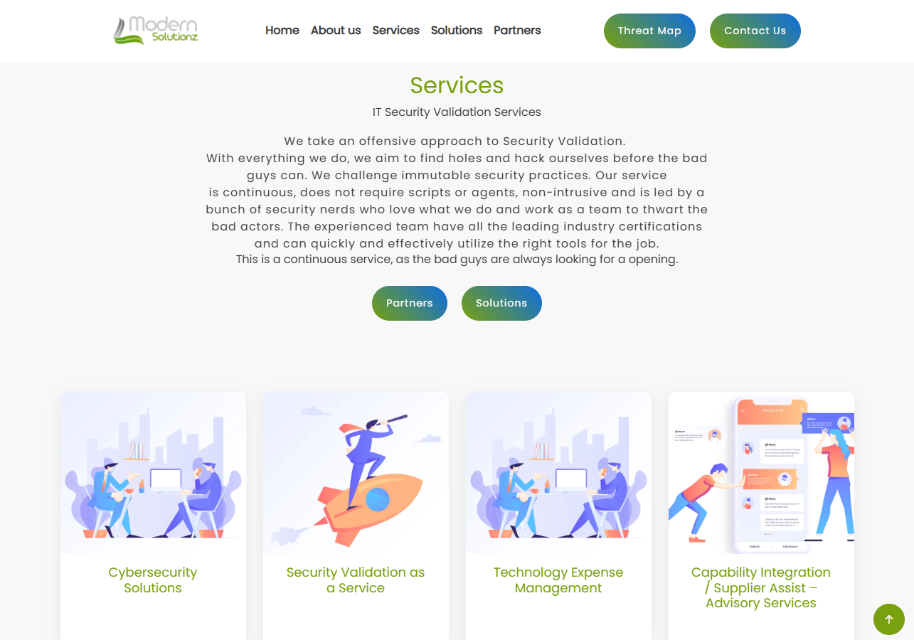 Modern Solutionz is a technology-based IT services firm offering a comprehensive portfolio tailored to meet the evolving needs of public sector and enterprise clients nationwide. Their services include security validation, managed security services, network services, and cloud security services, all aimed at protecting critical assets and data from cyber threats.
