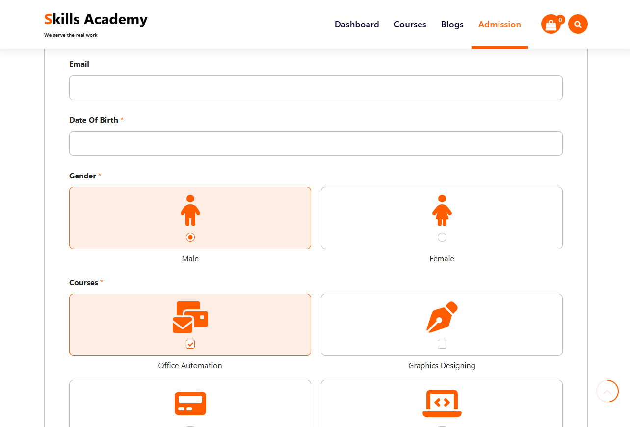 - Integrated a contact form to facilitate communication between students and Skills Academy support.
