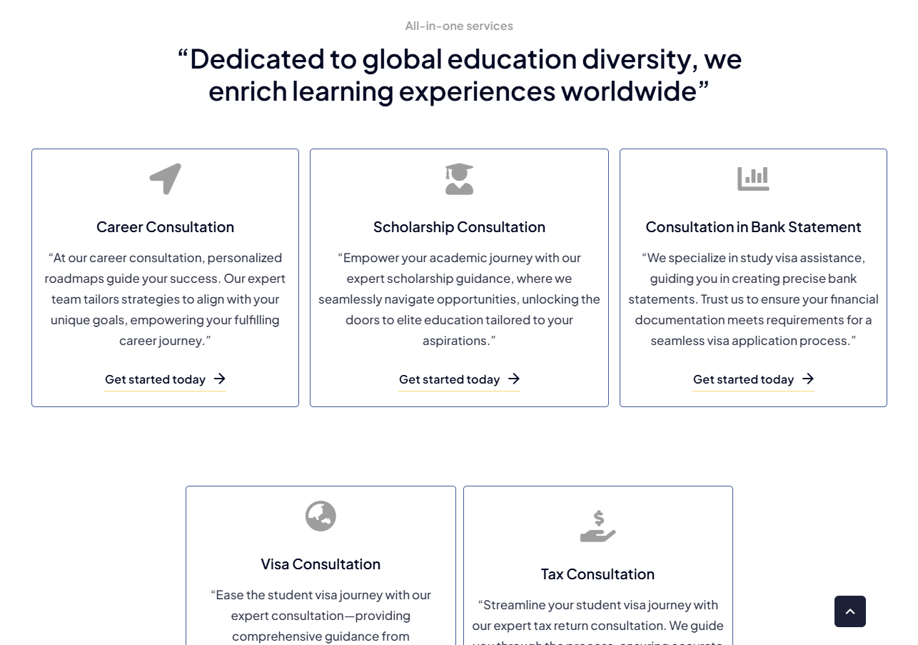 Scholarship Consultation: Offering expert guidance to navigate scholarship opportunities tailored to student aspirations.