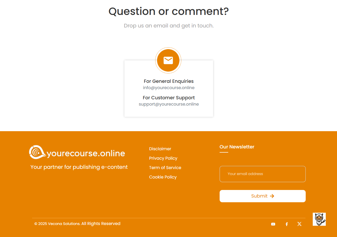 Your Ecourse is an innovative platform designed to empower educators, companies, and manufacturers to seamlessly create and share e-learning content integrated with interactive tests. The platform offers a user-friendly interface for uploading videos, customizing web spaces, and creating multiple-choice questions, enhancing the learning experience for participants.